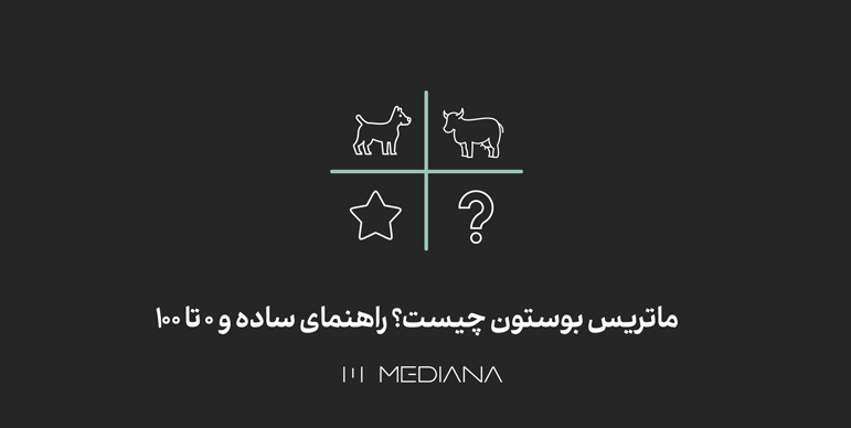 - ماتریس BCG شامل چهار بخش سگها، گاوهای شیرده، ستارهها و علامتهای سوال است. نامهایی که در ابتدا تعجب برانگیز هستند؛ اما بعد متوجه خواهید که چه معنای بزرگی در پشت خود دارند.